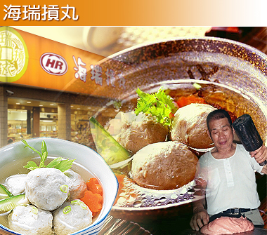 認識「新竹摃丸」的品牌,您不能不知道新竹市人的第一品牌「海瑞摃丸」。「海瑞摃丸」的創辦人,同時也是新竹最早開始有記載,經營摃丸製作的黃海瑞老先生,19歲開始,便在南門市場創業經營麵攤,並選用台灣黑毛豬的後腿肉來製作摃丸,所以口感特別有彈性,老一輩的新竹人,吃麵的時候,如果能加上一顆摃丸,就是非常奢侈的消費了,也因為這樣,大家口耳相傳,常常念著:「走,來去海瑞那裡吃摃丸麵」於是,海瑞麵攤的摃丸便開始知名了起來。